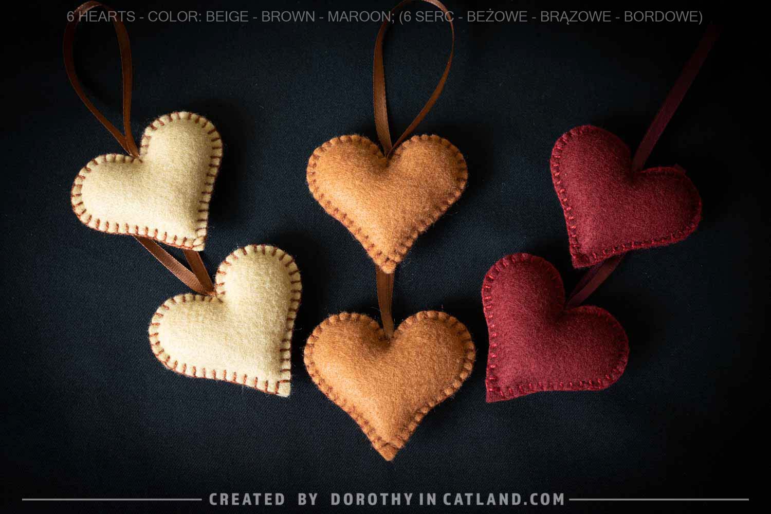 - Beige hearts that are edged with a brown thread, with brown ribbon – 2 pieces